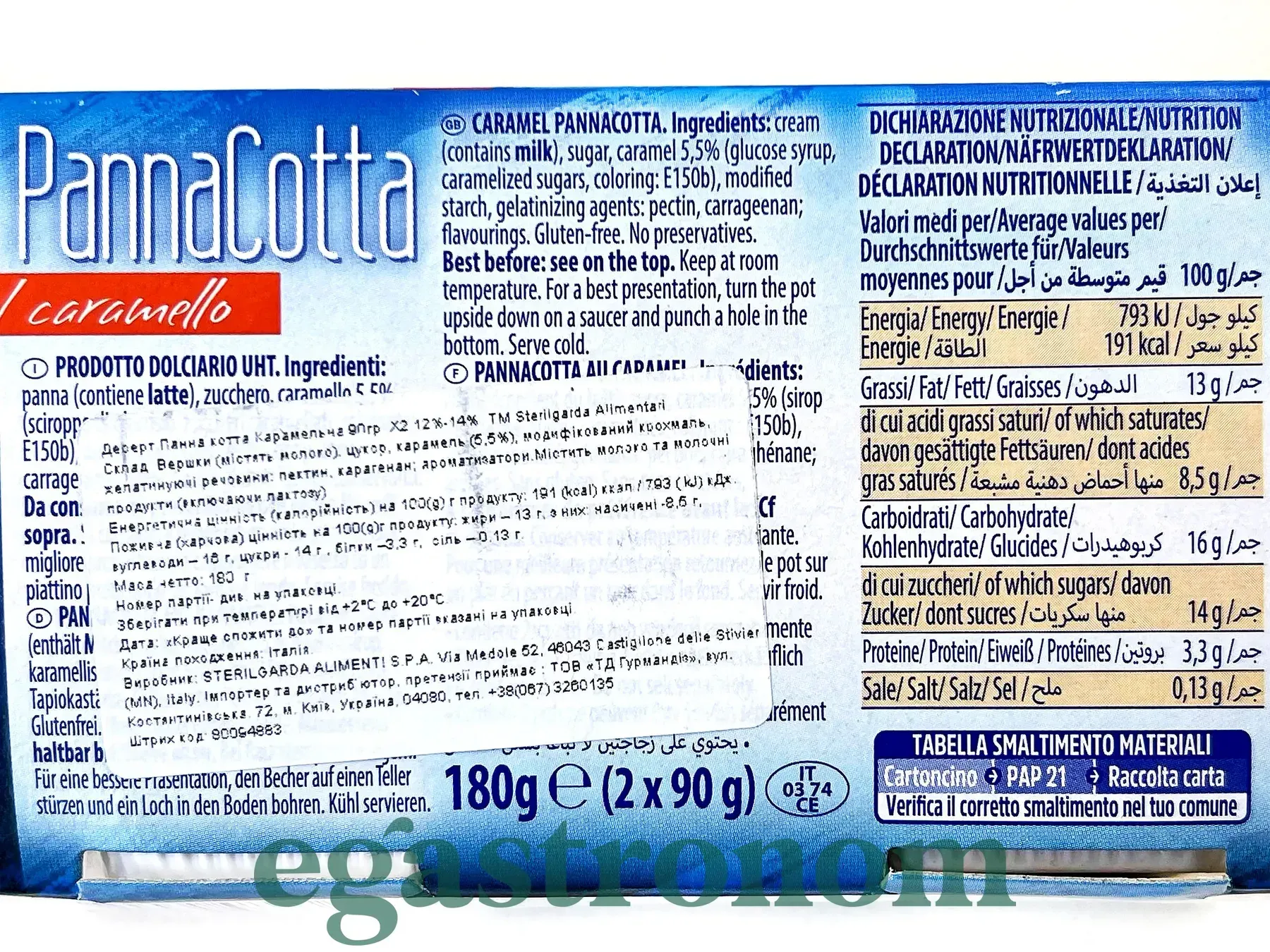 Десерт панна котта карамель Стерілгарда Sterilgarda alimentari 2*90g 12шт/ящ. Изображение №2