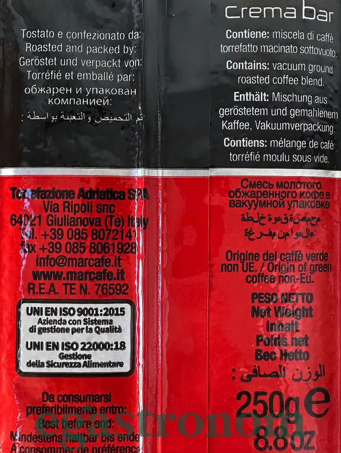 Кава крема бар (мелена) Маркафе Marcafe crema bаr 250g 24шт/ящ