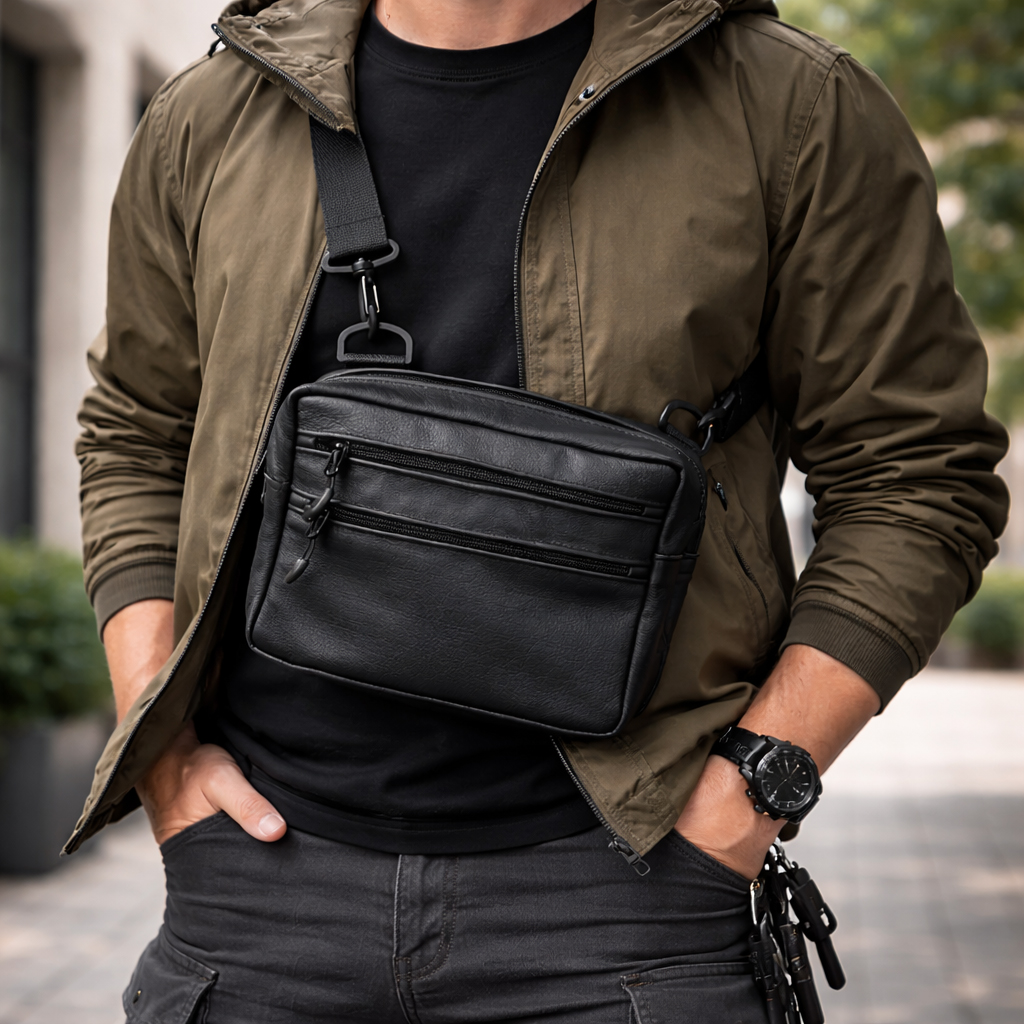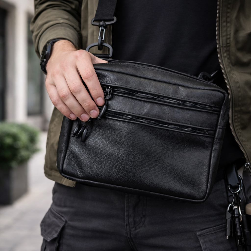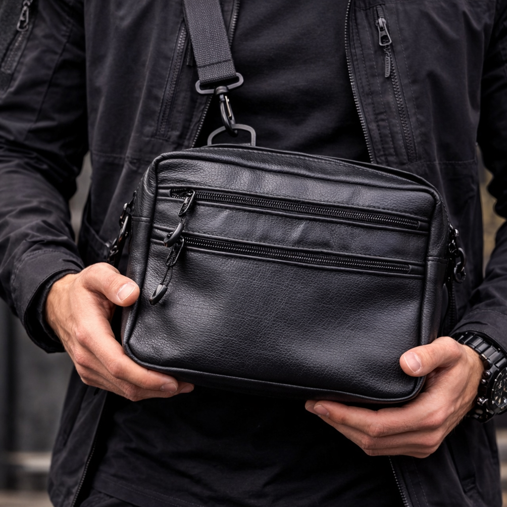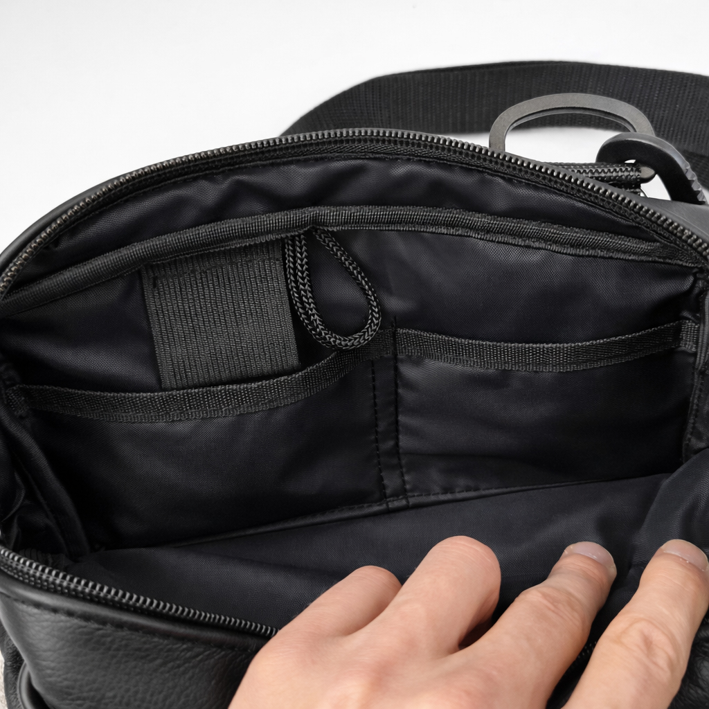 Сумка имеет продуманную организацию внутреннего пространства, позволяющую удобно разместить все необходимые вещи: планшет, блокнот, документы, телефон, ключи и другие аксессуары. Благодаря компактному, но вместительному формату сумка подходит как для повседневного использования, так и для работы, путешествий или городского стиля.