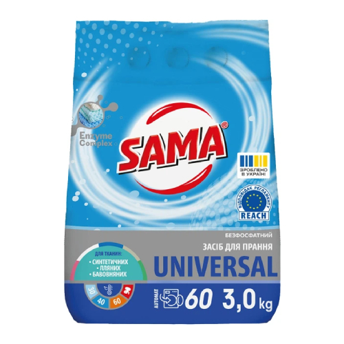Універсальний пральний порошок Sama Гірська свіжість безфасфотний 60 циклів прання 3 кг (266776)