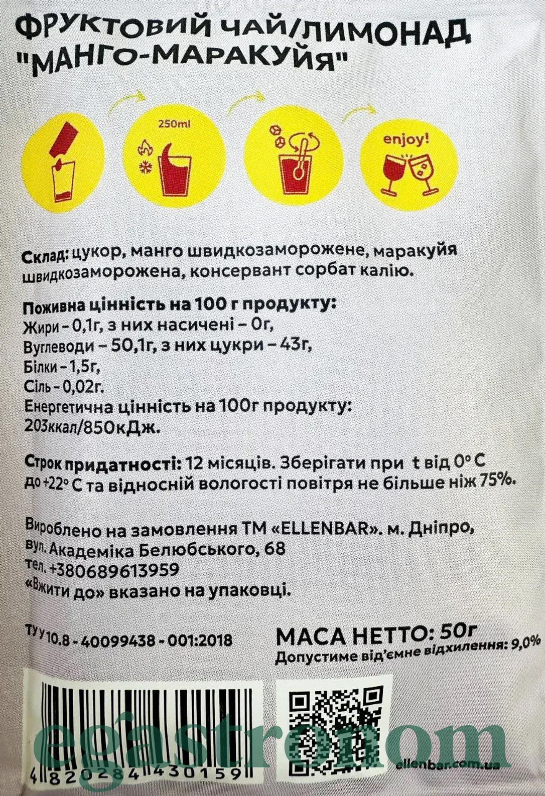Чай концентрат манго та маракуйя Еленбар Ellenbar 50g 12шт/ящ