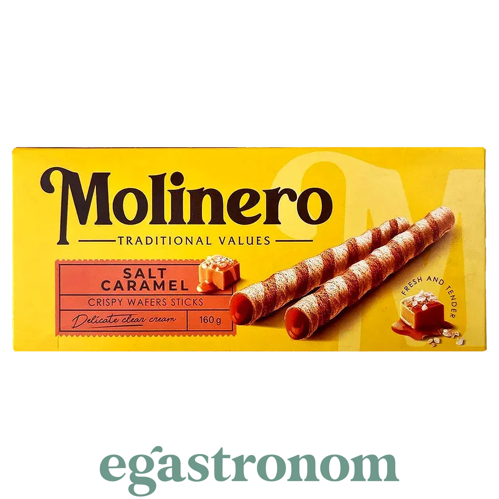 Вафельні трубочки зі смаком соленої карамелі Молінеро Molinero 140g 32шт/ящ