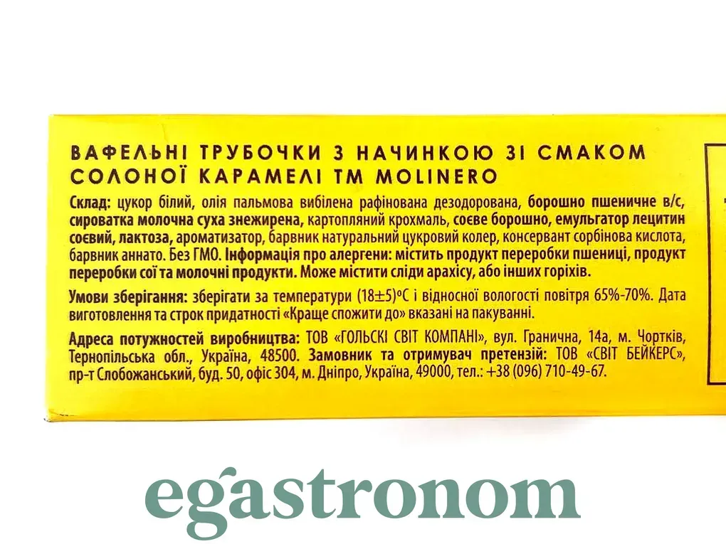 Вафельні трубочки зі смаком соленої карамелі Молінеро Molinero 140g 32шт/ящ. Изображение №2