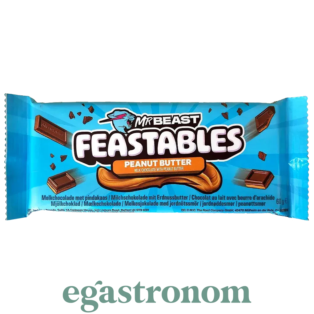 Шоколад з арахісовою пастою М. Біст Mr Beast feastables peanut butter 60g 10шт/ящ. Изображение №2