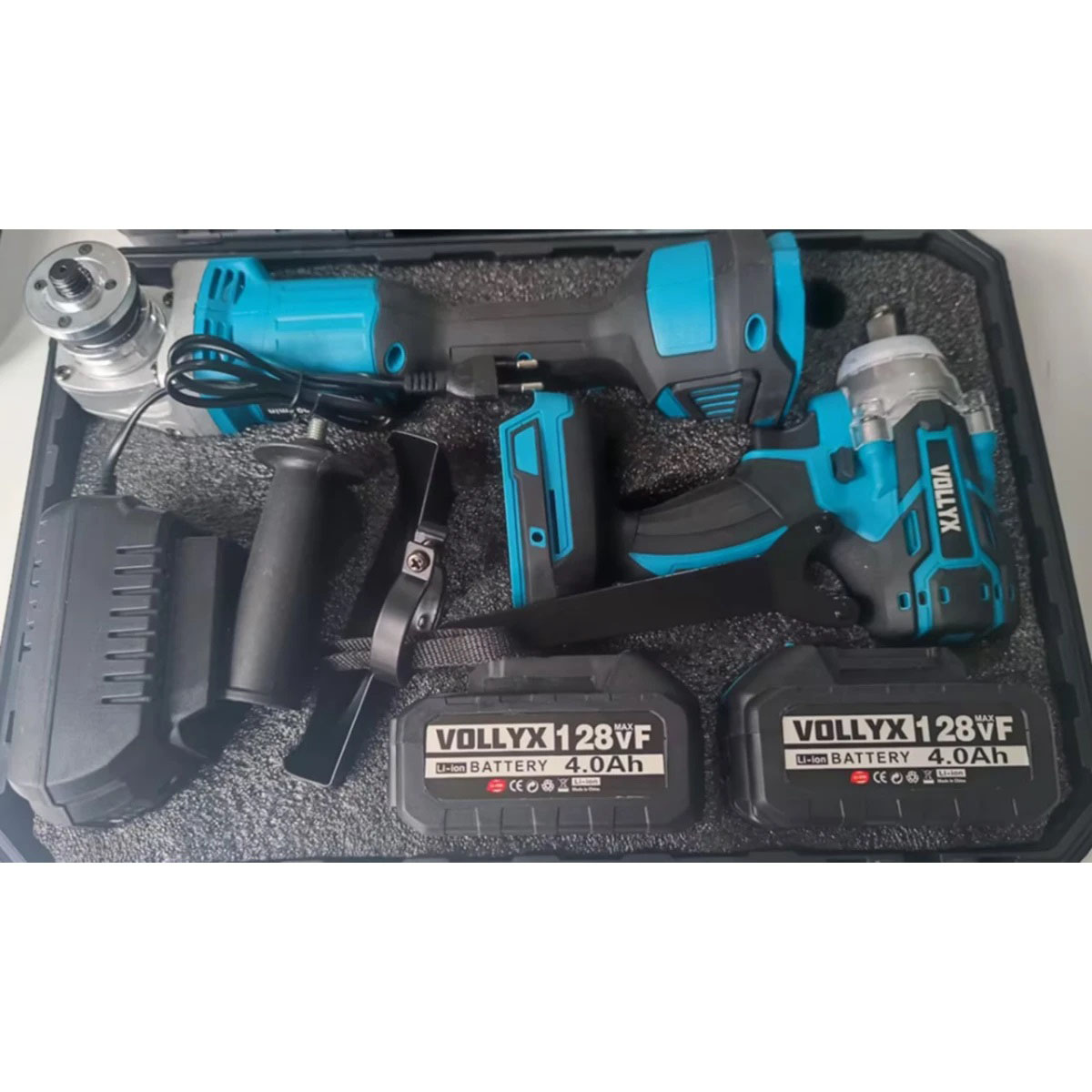 Набор аккумуляторных инструментов 2в1 Болгарка и Гайковерт 2АКБ Синий предлагает универсальное решение для выполнения широкого спектра работ, сочетая в себе удобство и мобильность. Этот комплект оснащён двумя мощными 128VF Li-Ion аккумуляторами ёмкостью 4.0Ah, что обеспечивает продолжительную автономную работу без необходимости постоянного подключения к сети. Благодаря эргономичной конструкции и слаженной комплектации, набор станет надёжным помощником как для домашних мастеров, так и для профессионалов.