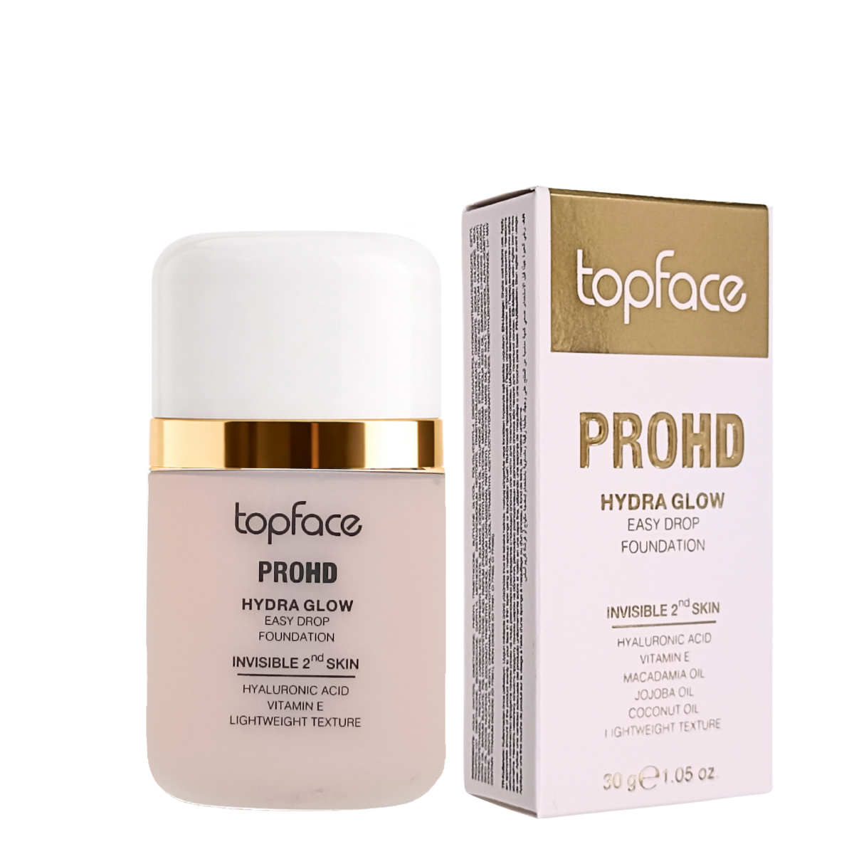 шкіри, що потребує зволоження та комфорту, зокрема зневодненої та вікової;Ефект від використання тональної основи Topface PROHD Hydra Glowідеально рівний тон обличчя;