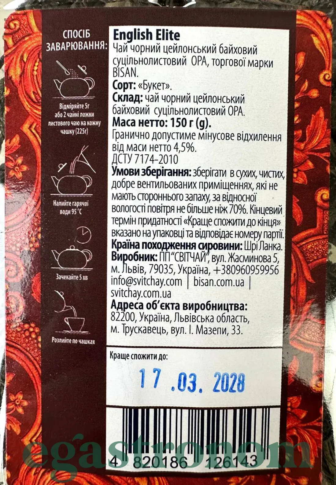 Чай англійський елітний Бісан Bisan english elite 150g 6шт/ящ