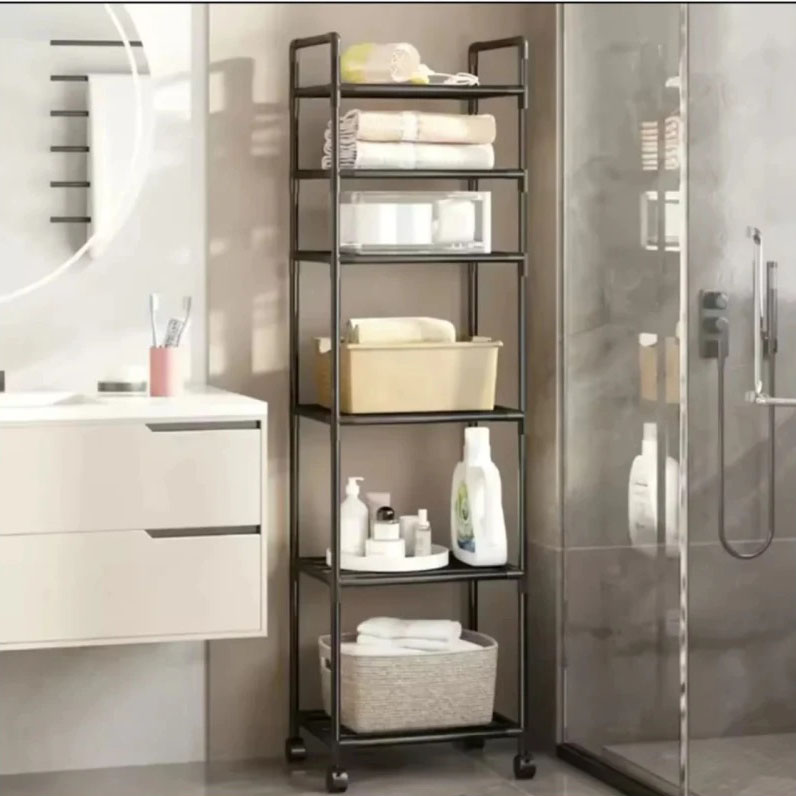 - Практическая польза: 6 вместительных полок позволяют компактно разместить бытовые принадлежности, косметику, полотенца или мелкие предметы, сохраняя порядок.