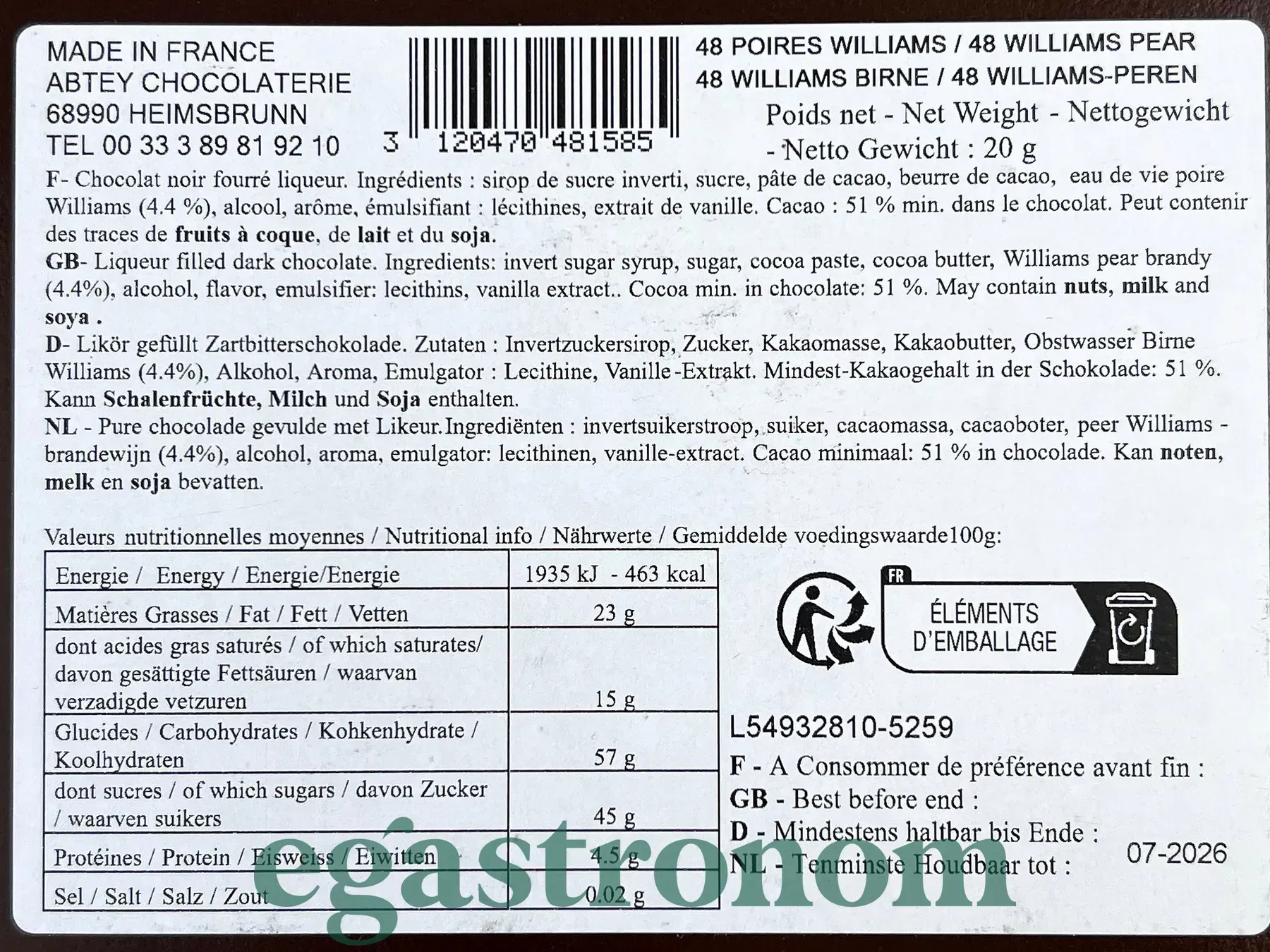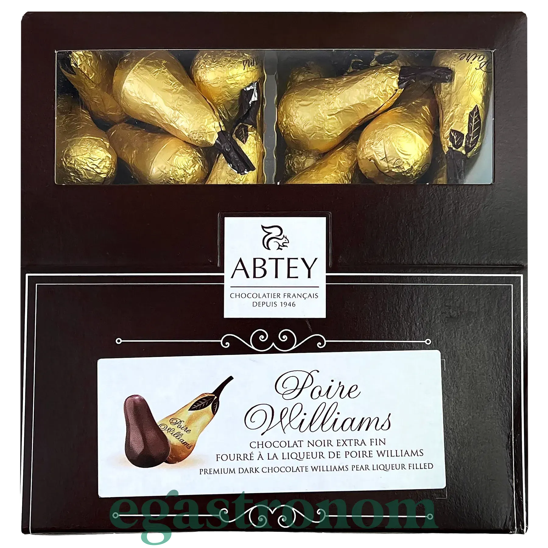 Шоколадні цукерки у формі груші наповнені лікером Абтей Abtey Pears williams 960g 4шт/ящ. Изображение №2