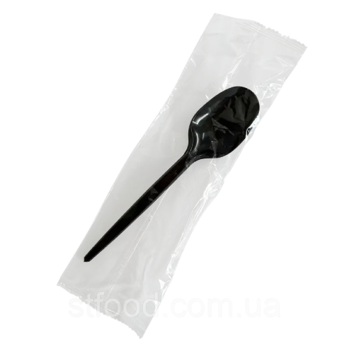 Ложка столова одноразова в індивідуальній упаковці 1 шт. Чорна (3016)