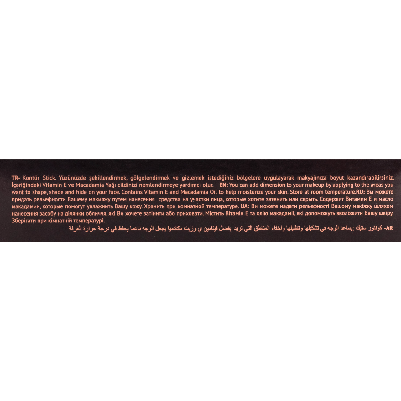 стійкий макіяж протягом дня.Спосіб використанняНанесіть контуринг-стик на зони для затемнення: під вилиці, вздовж лінії росту волосся, по боках носа та під підборіддя.