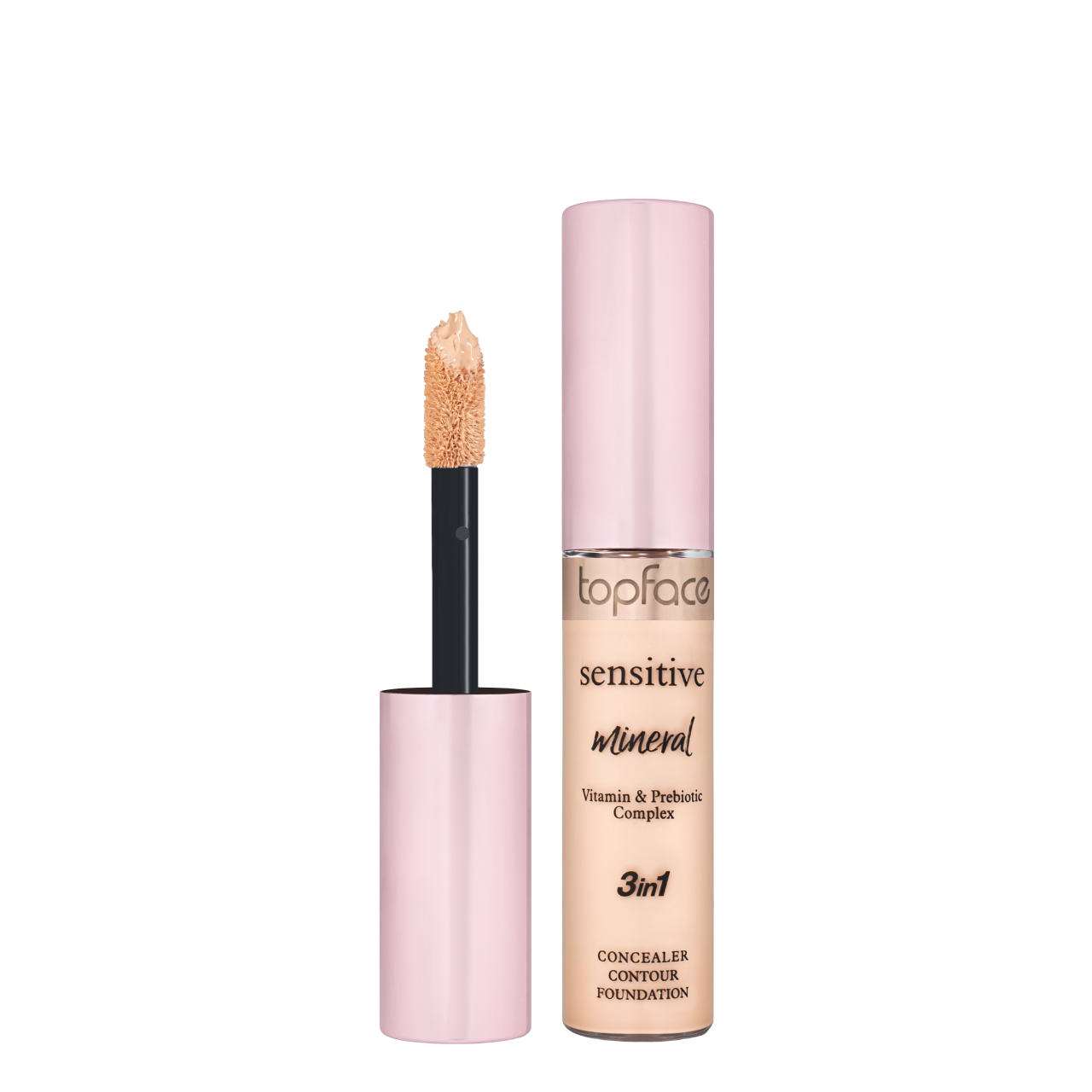 Консилер для обличчя topface Sensitive Mineral 3-IN-1 Concealer РТ471Спеціально розроблена формула консилера topface з комплексом вітамінів, мінералів і пробіотиків, мінімізує появу зморшок, сприяє зволоженню шкіри, володіє високою криючою здатністю, вирівнює і коригує тон шкіри. Легко наноситься спеціальним аплікатором. Може використовуватися в якості консилера, тонального крему або засоби для контурінга. Підходить для сухої і чутливої шкіри. Не тестується на тваринах. Не містить продуктів тваринного походження.Мінеральний консилер є незамінним помічником при створенні ідеального макіяжу.Легка текстура ніжно лягає на шкіру, усуває пігментні плями, почервоніння, дрібні зморшки, темні кола під очима та інші недоліки,