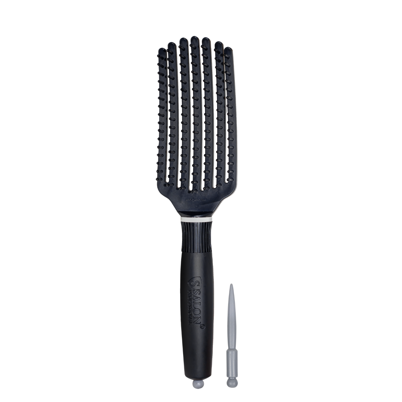 Щітка має зручну ручку. Продувна щітка не дає пасма можливість розпадатися під час укладання. Пластикові щетинки із закругленими кінчиками, які абсолютно не травмують волосся і шкіру голови. Основа і ручка виготовлені з пластику. Її застосовують для волосся різної довжини і структури.Спосіб застосування: застосовуються для укладання волосся. За допомогою щітки можна надати форму зачісці.Корпус має 7 рядів.Довжина: 245 ммШирина: 55 мм